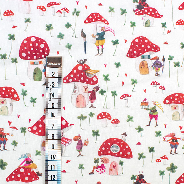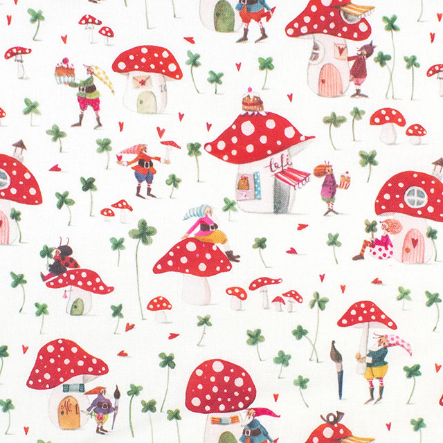 小人たちとその上の人形は、見ているだけで可愛らしいです。キノコ畑には四つ葉のクローバーしか生えていません。