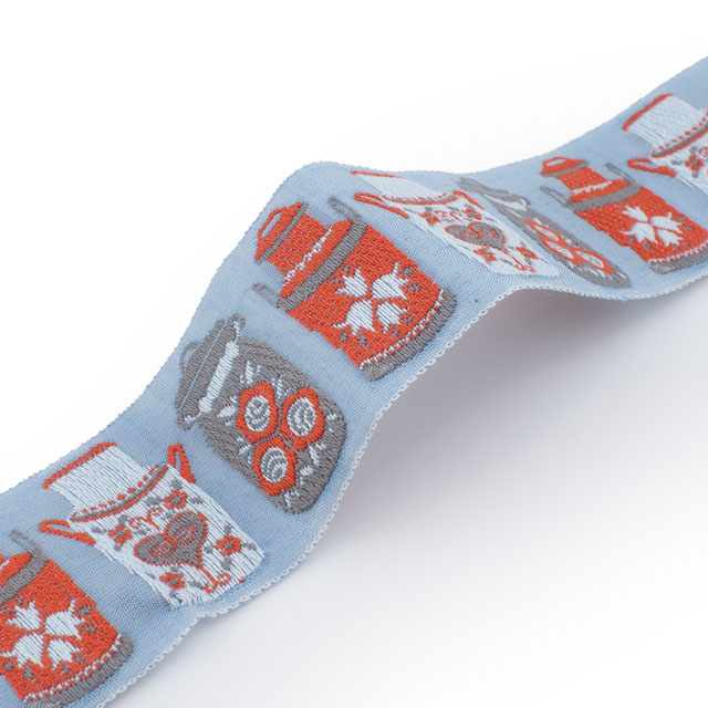 伝統あるジャガード織の技術を活かして作られた装飾的なリボンは、その繊細な織りが気品と重厚さを生み、世界中の手芸愛好家から愛されています。