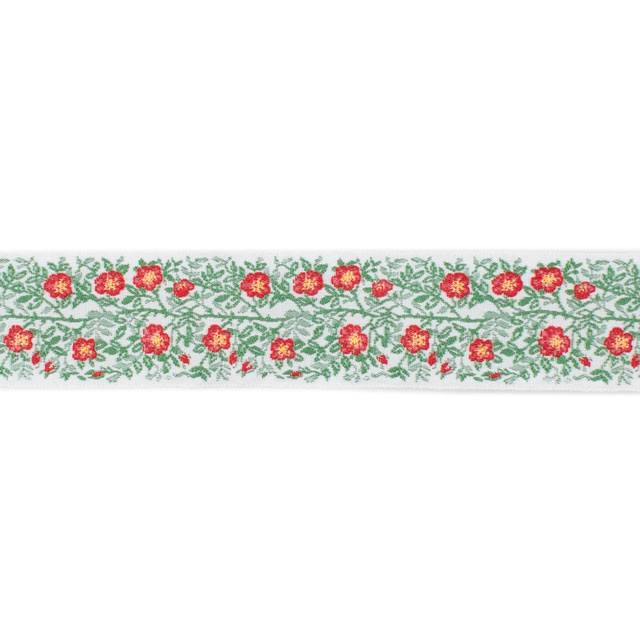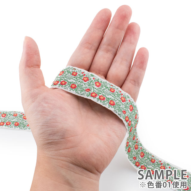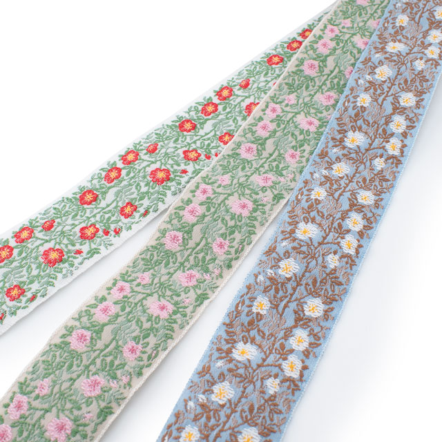 伝統あるジャガード織の技術を活かして作られた装飾的なリボンは、その繊細な織りが気品と重厚さを生み、世界中の手芸愛好家から愛されています。