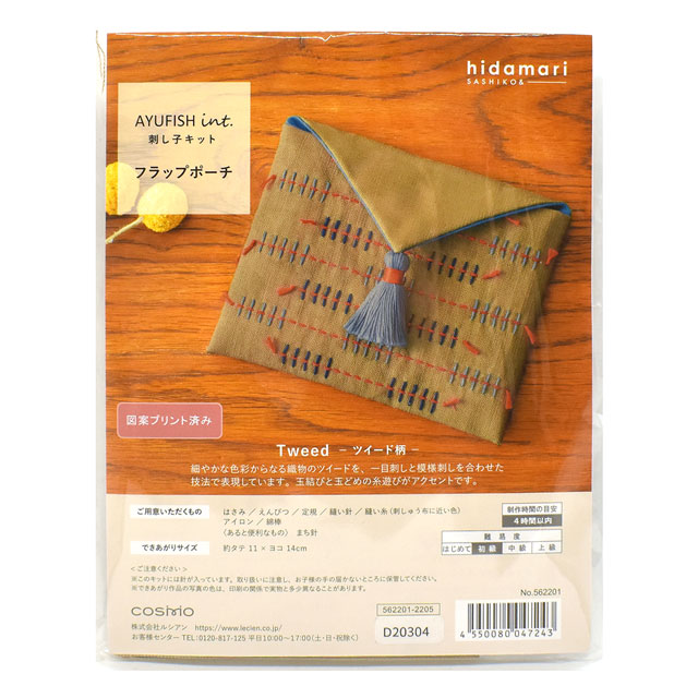 刺し子をした後、ご自身でフラップポーチ仕立てます。