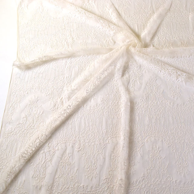 全体にお花柄とスカラップ風の模様を幾重にもあしらった、繊細なチュールレースです。