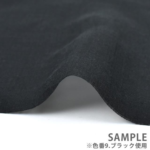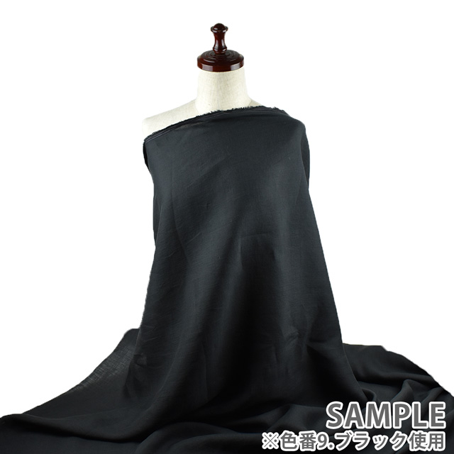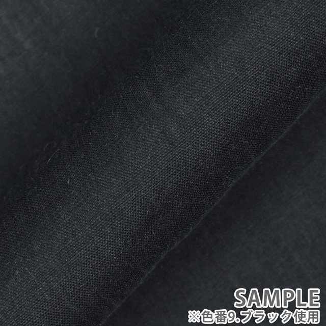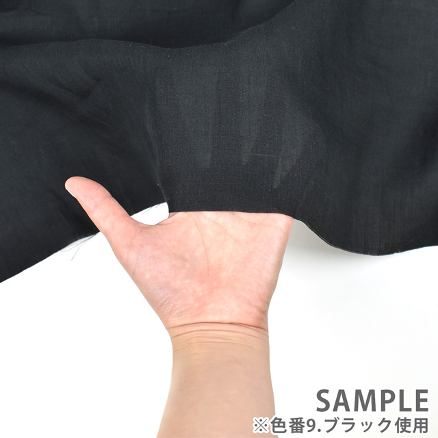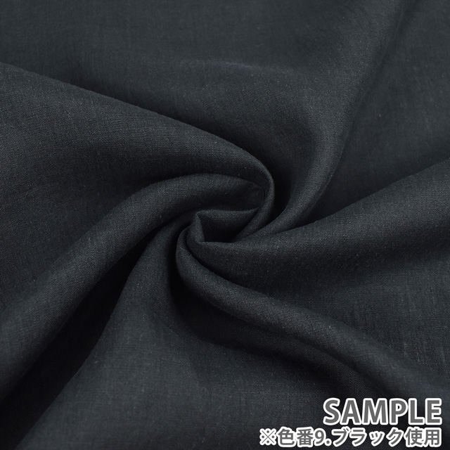 透け感のある薄手の麻生地。ハリ、コシあるラミー素材ですが、揉み込み・柔軟加工により柔らかい風合いに仕上がっています。繊細で上質感があるのでブラウスやワンピースなどにおすすめ。