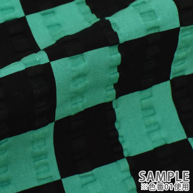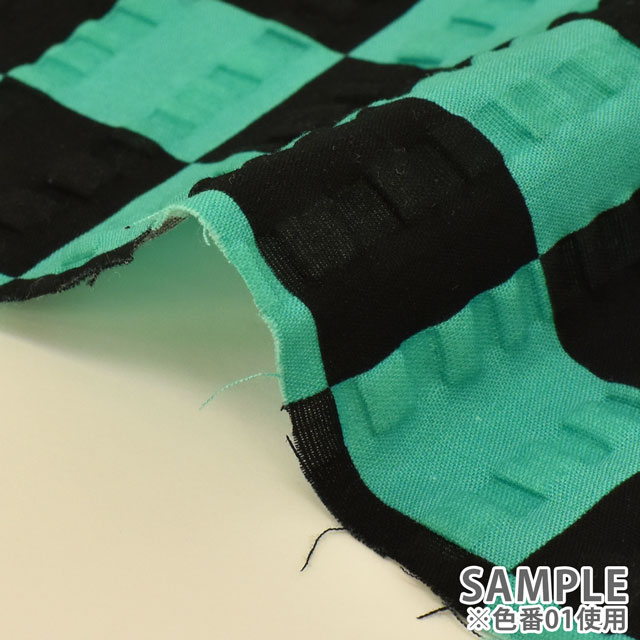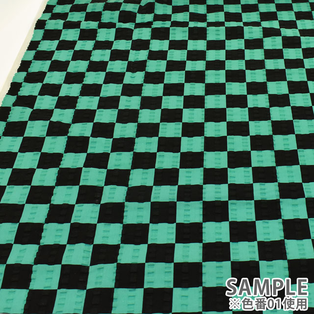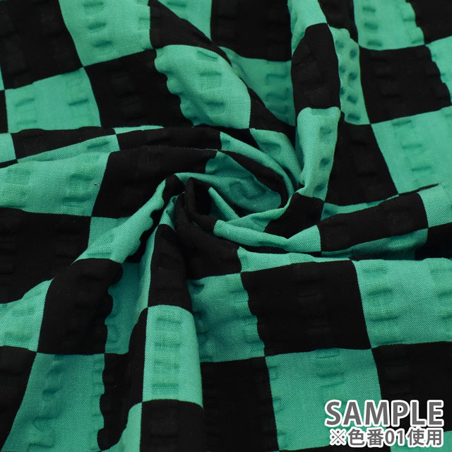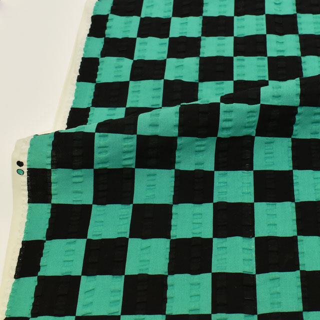 生地 和風リップルプリント 市松模様(201023) 01.黒×緑 99Zz99_