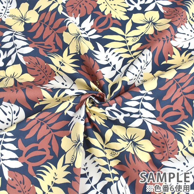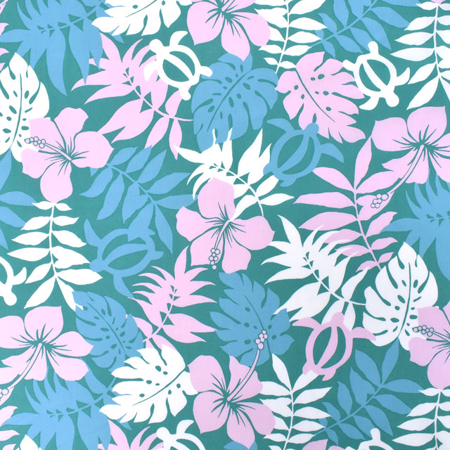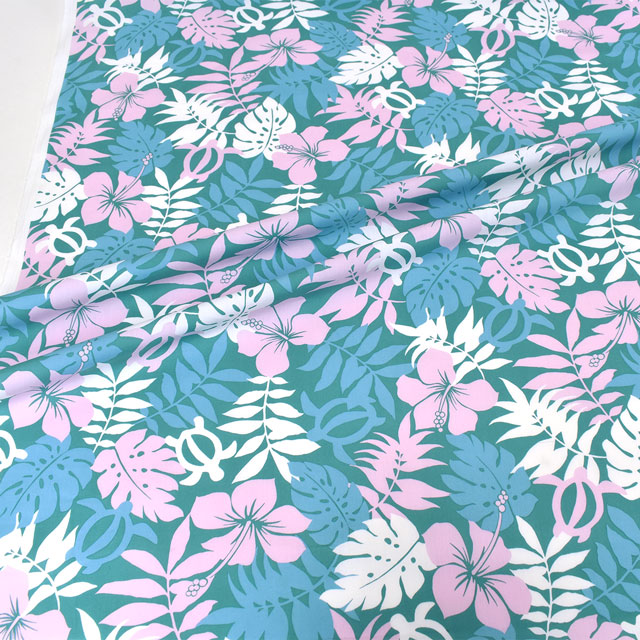 ハワイアンモチーフがプリントされた薄手T/Cブロード生地です。