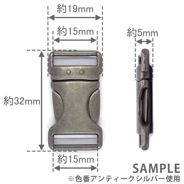 金属製差し込みバックル アタッチメント(JTMP-11) 15mm幅テープ用 シルバー 08Bg99_