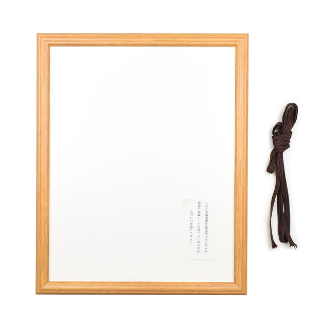 - ●セット内容・材質:枠(薄いブラウン / ポリスチレン樹脂、吊り金具 / 鉄)、面材(アクリル)、裏板(MDF)、厚紙、厚手発泡スチロールの板、吊り下げ紐