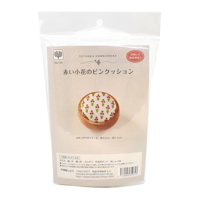 大人気シリーズの書籍「地刺しの連続模様3」に掲載されている作品「赤い小花のピンクッション」が作れるキットです。