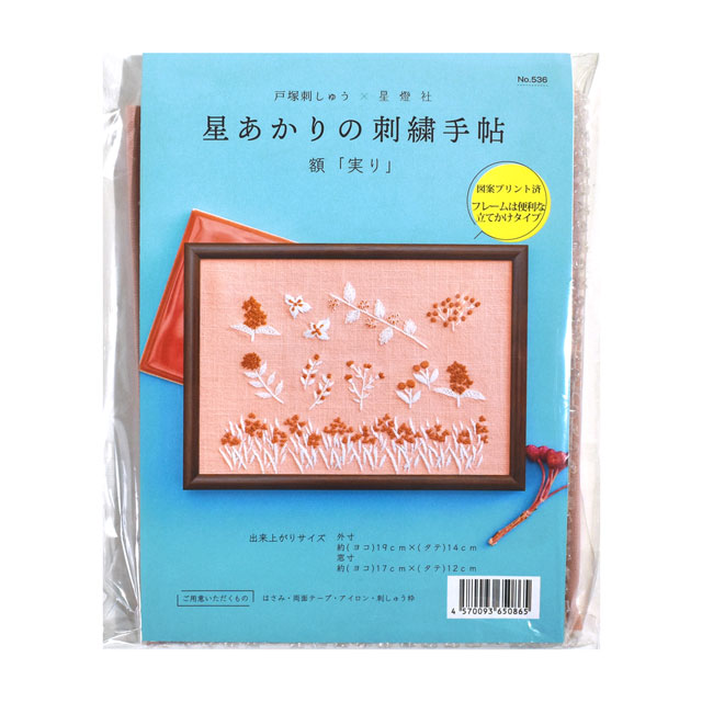 - ●セット内容:刺しゅう糸・刺しゅう布(綿100%)、刺しゅう針(鋼)、フレーム(枠/PVC、吊り金具/スチール、裏板/MDF、厚紙/紙)