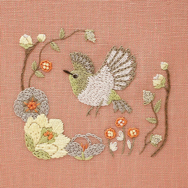 リネン布に図案がプリントされていて、中級者方向けのフリーステッチ技法のキットになります。