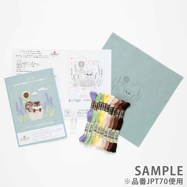 - ●セット内容:DMC25番刺しゅう糸(フランス製/8mかせ巻)、図案印刷済刺繍布(リネン100% サイズヨコ約25cm×タテ約27cm)1枚、刺繍針(9号)1本、説明書/図案 1部