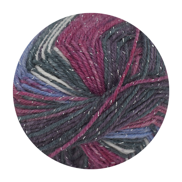 Opal毛糸のオリジナルカラーシリーズにきらびやかなラメが施された糸です。
