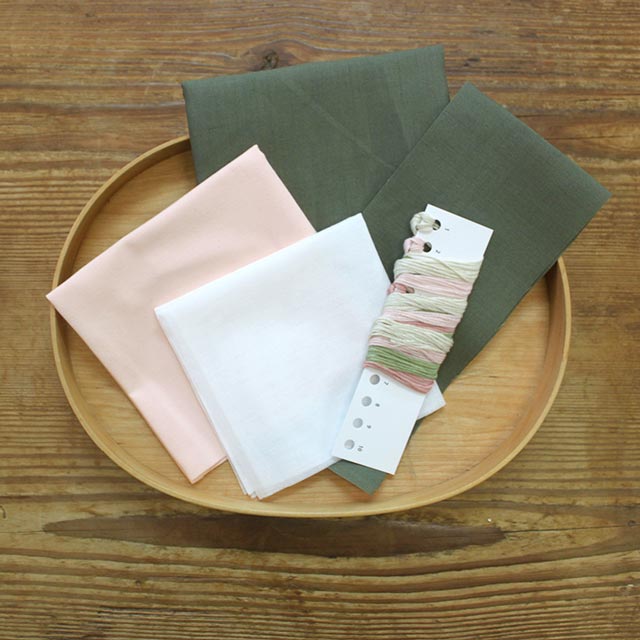 - ●セット内容:表生地(麻100%)、裏生地(綿100%)、接着芯、刺繍糸、作り方説明者