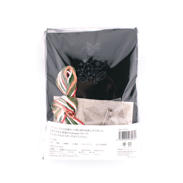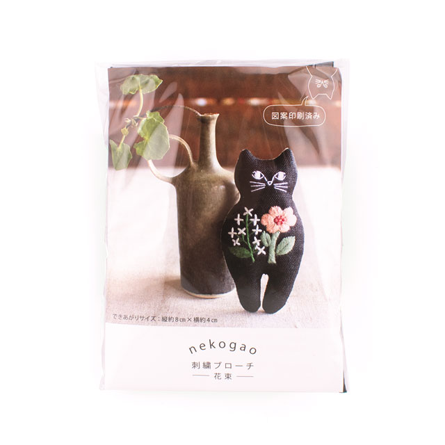 - ●セット内容:表布(図案プリント済)、裏布、刺しゅう糸、手芸わた、ブローチピン、作り方説明書