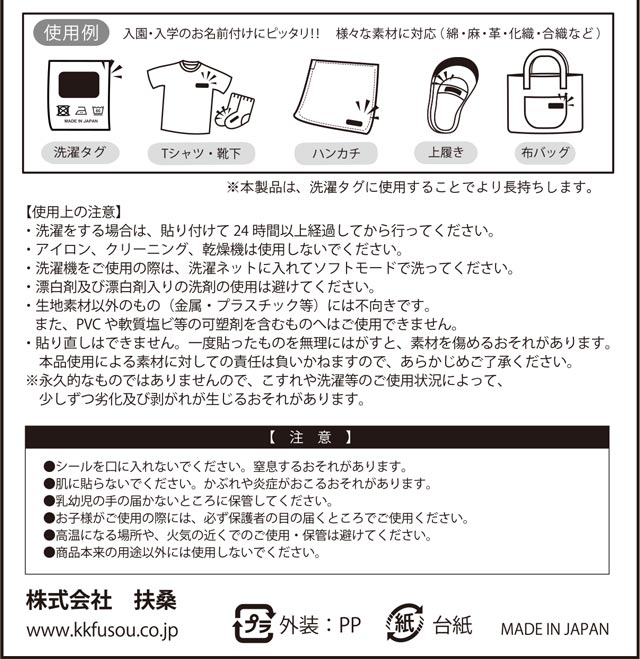 アイロンいらずの布用お名前シール ふぁぶねーむ 中 ホワイト 08Bf99_