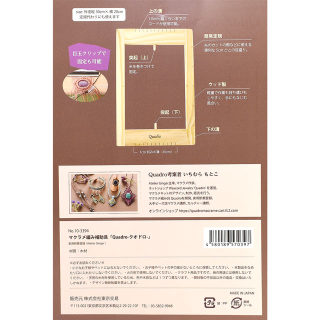 マクラメに慣れないうちは、芯糸と結び糸のどちらがどちらかわからなくなり、結び方を間違えてしまうなんてことがありますが、クオドロを使用することで糸の配置もわかりやすくなります。