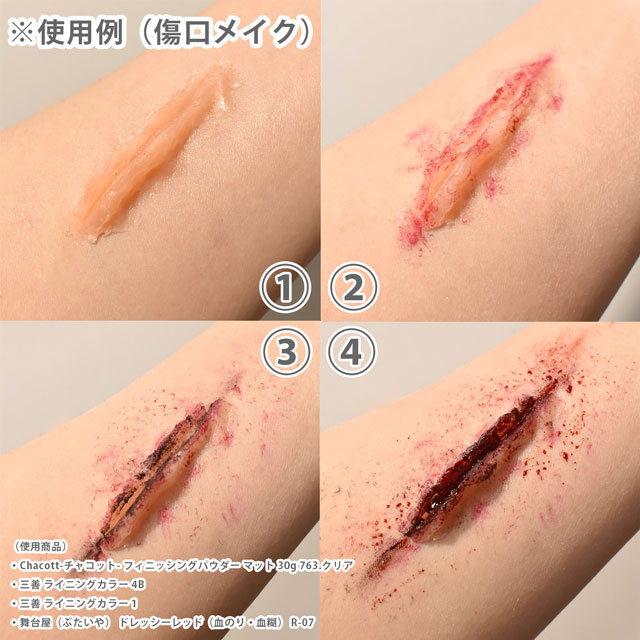 傷、火傷などの特殊メイクをするときに使用します。
