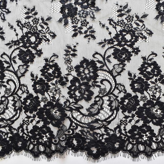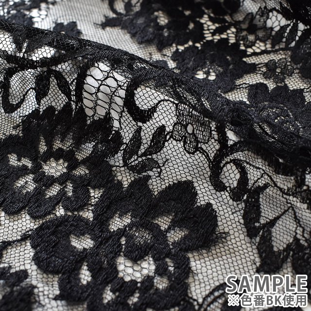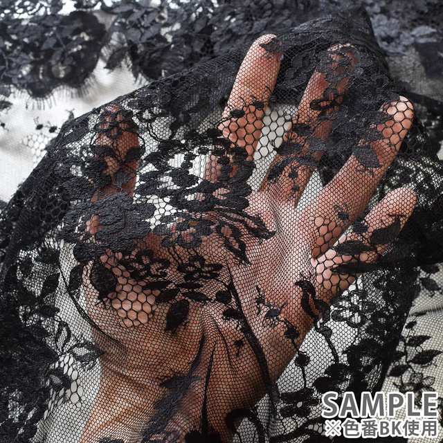 ごく細い糸を利用し花柄模様に撚り合わせて編まれた、繊細さと上品さが特徴のレースです。