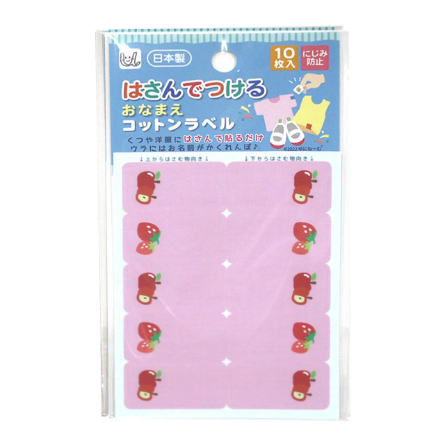 くつや洋服にはさんで貼るだけのコットンラベル。