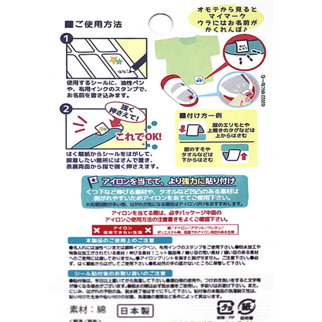 くつや洋服にはさんで貼るだけ。ウラにはお名前がかくれんぼ。
