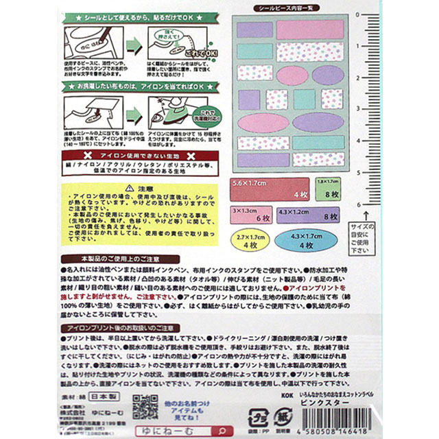ネームシール いろんなかたちのお名前コットンラベル(UNP1471) ピンクスター 08Bf99_