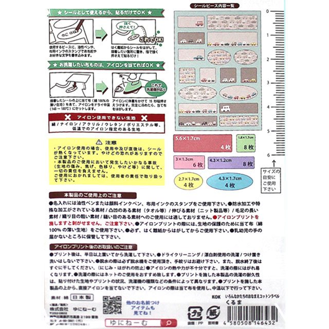 ネームシール いろんなかたちのお名前コットンラベル(UNP1467) クルマ 08Bf99_