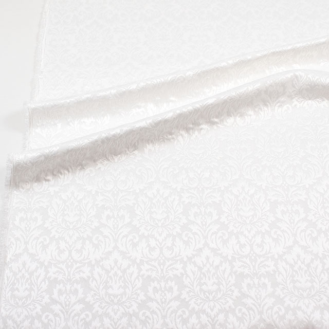 舞台衣装、ブライダル、インテリアなどにおすすめの、織りで表現したダマスク柄が全面に入った生地です。