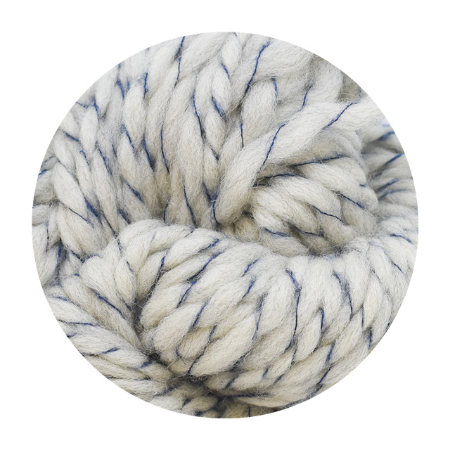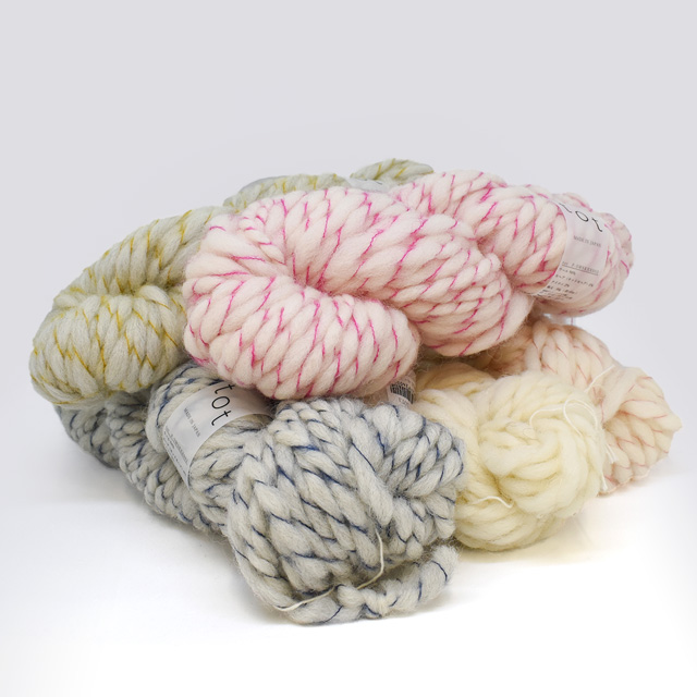 ほとんど撚りをかけていないウールそのままの糸に、光沢のある繊細なカラーキッドモヘヤを巻きつけたモダンな極太糸です。