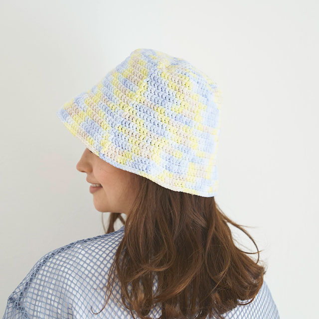 夏の編み物にぴったりな糸[NAILY]で編む、爽やかカラーのバケットハットキット。