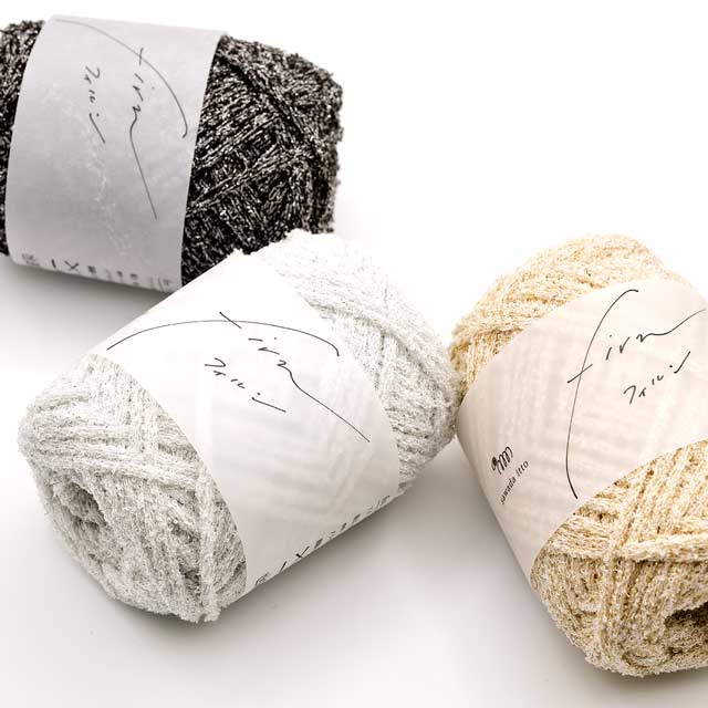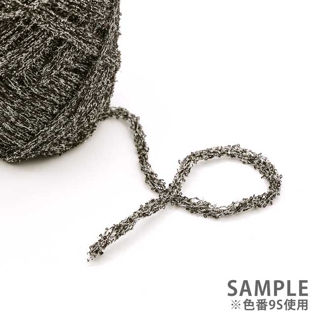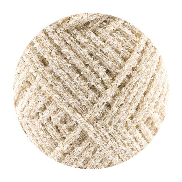 ラメ糸特有の引っ掛かりは無く、タオル地のような優しく柔らかな風合いが特徴のラメブークレリリヤン毛糸です。