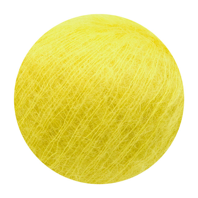 糸を起毛することでモヘヤの毛足を出し、素材本来の良さを際立たせたこの糸は、手触りが滑らかで、上品な光沢が特徴です。