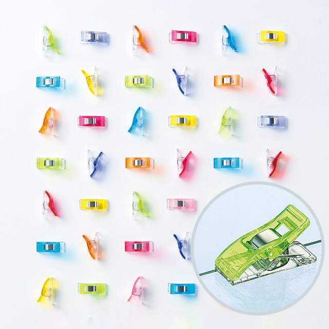仮止めクリップは、ラミネート生地・合皮・革など針で穴が開いてしまう素材の仮止めに最適なクリップです。