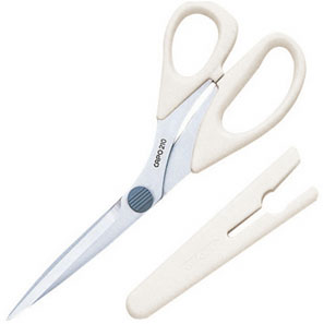 持ち運びに安全なキャップ付きのステンレス製はさみです。
