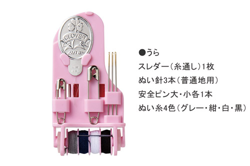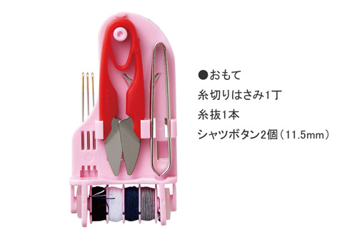 ●内容:ぬい針3本、糸切りはさみ、ボタン2個、安全ピン2本、糸抜、4色糸巻、スレダー