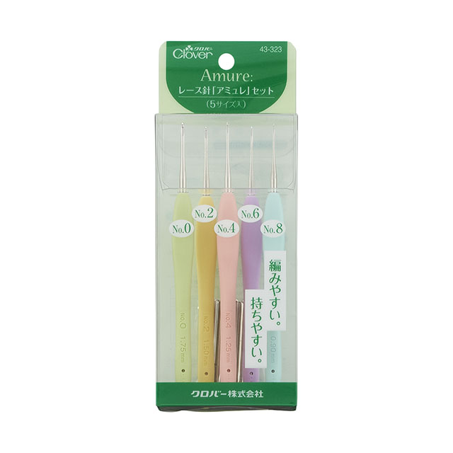 ソフトタッチのシャーベットカラーのグリップで初心者にも編みやすい針先のレース針。