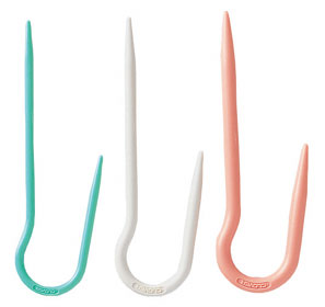 U字部分で編み目が止まる設計で、落ちにくい形状のなわ編み針です。
