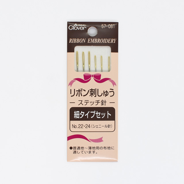リボンが通しやすい長い針孔。用途やリボンのタイプに応じて、よく使うサイズをセット。