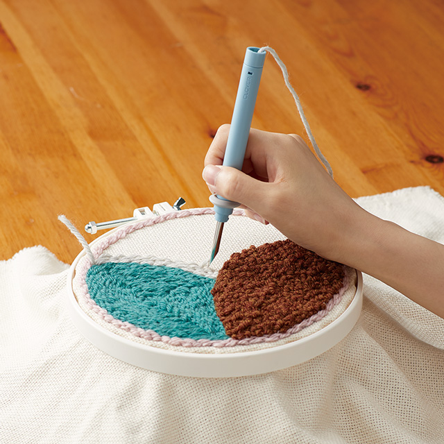 別売のパンチニードル用フープ(18cm)、パンチニードル用ファブリック、パンチニードル用ボンドと合わせてご使用ください。