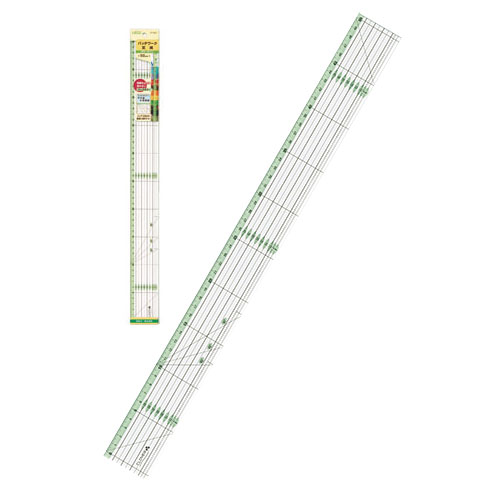 製図、型紙作り、キルティングライン、印つけなどペンを使っての作業に最適なすっきり見やすい平行線&角度線が入ったシンプルな定規です。