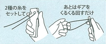 2本の糸を合わせて、「よりひも」が作れます。