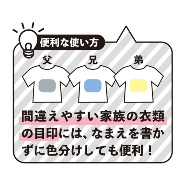 入園・入学時の衣類のお名前つけはもちろん、色分けすることで間違えやすい家族の衣類の目印としてもおすすめ。