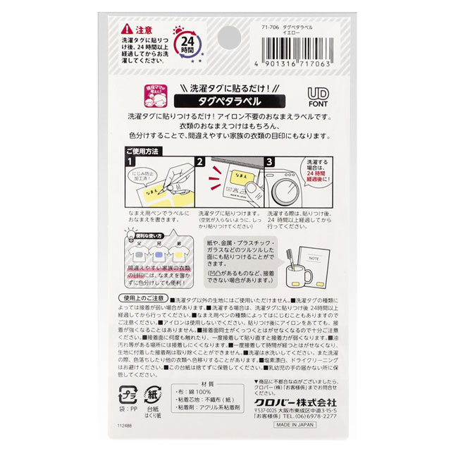 ・洗濯表示タグの種類、素材によっては接着が弱い場合があります。