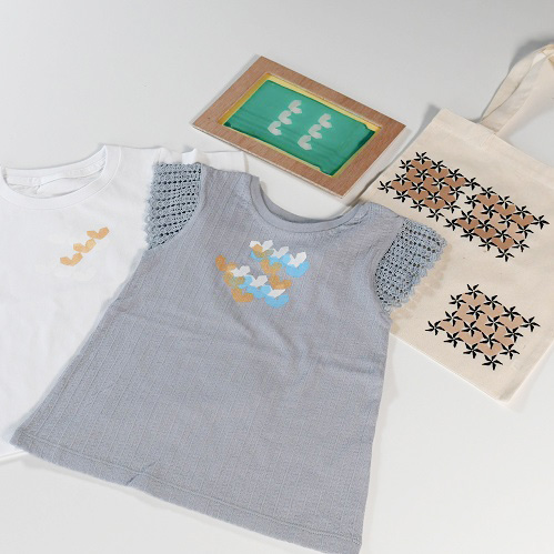 版を使って同じデザインをたくさんプリント出来るので、オリジナルグッズの製作や、お揃いのTシャツ作りなどのレクリエーションにもおすすめです。