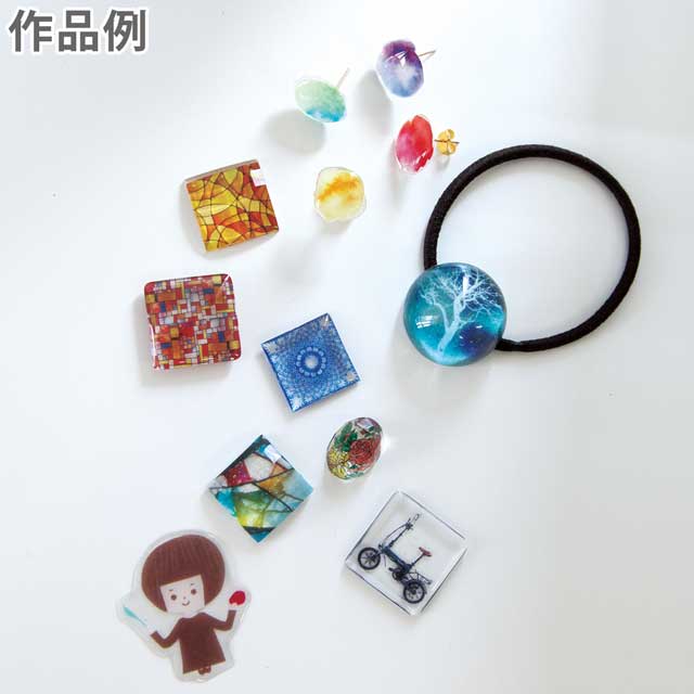 印刷面にレジンをのせて硬化させると、転写されたレジンパーツができます。