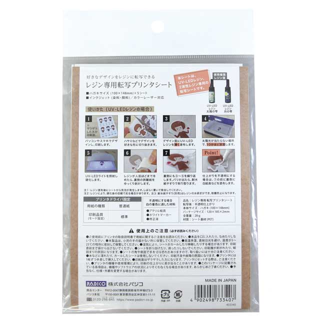 ・UV-LEDレジン、2液性レジン専用のプリンタ転写シート(特許出願中)