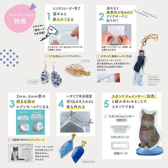 ・使用できる素材:UV-LEDレジン/2液性エポキシレジン/各種粘土