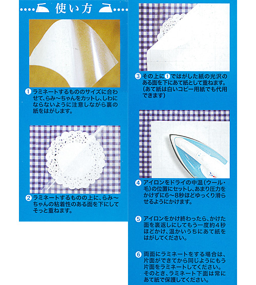 アイロンで生地に接着するだけで、簡単にラミネート加工できるシートです。