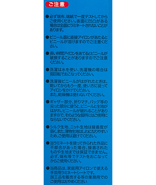 ・手芸用コーティングシートの為、加工品を販売するなどの業務用としては使用不可。