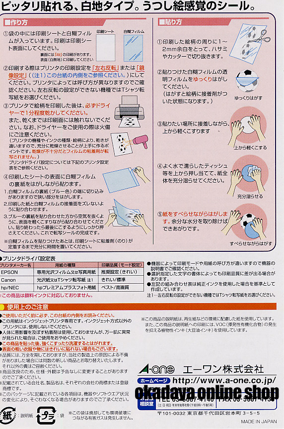 - ●内容量:印刷シート×2枚、透明フィルムラベル×2枚