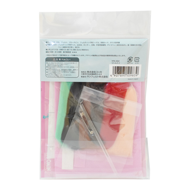 - ●セット内容:羊毛フェルト、フェルト、ブローチピン、フェルティング用ニードル、背景カード、作り方説明書
