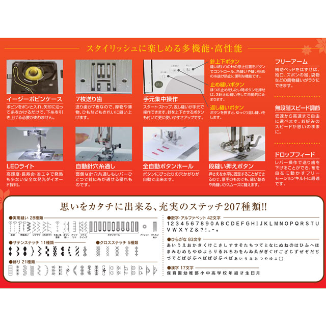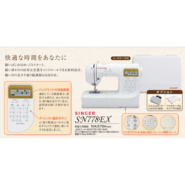ワイドテーブル・フットコントローラー・ハードカバーが標準装備のコンピュータミシンです。